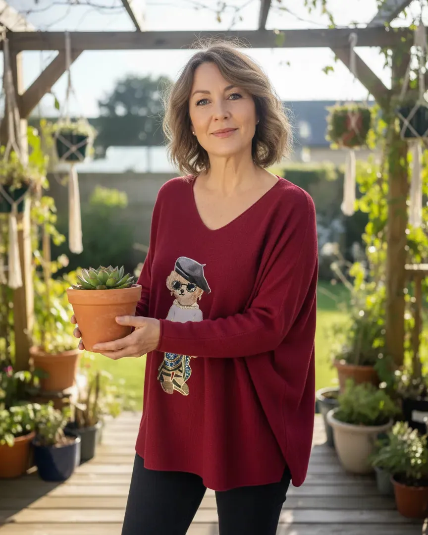 Le pull « Ourson Chic » apporte une touche de fantaisie raffinée à ton look.
