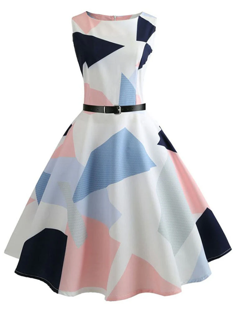 La robe année 60 soirée est une robe évasée pin up qui met en avant la silhouette. Avec le col rond et ceinture elle est très chic mais aussi hyper confortable. Cette robe sans manches à imprimé floral a également un design très recherché, idéal pour une collection d’été.