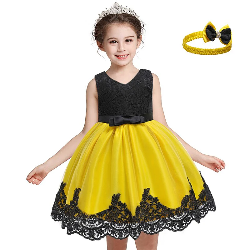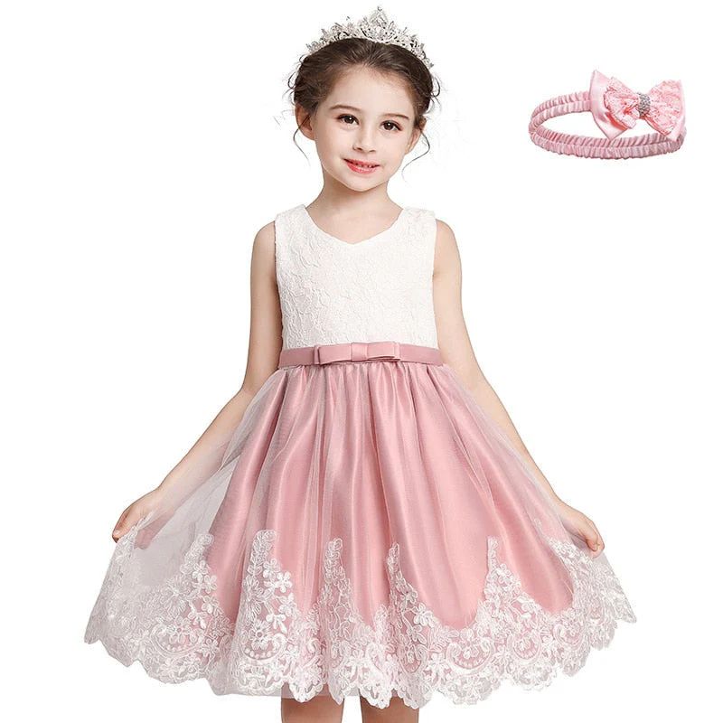La tenue avec un nœud papillon est faite en dentelle et en polyester doux pour la peau. La robe de fête avec bandeau est sans manches, un col rond , une ceinture en nœud papillon dans le dos pour apporter du charme à votre fille. Alors c’est le meilleur choix pour les petites filles.