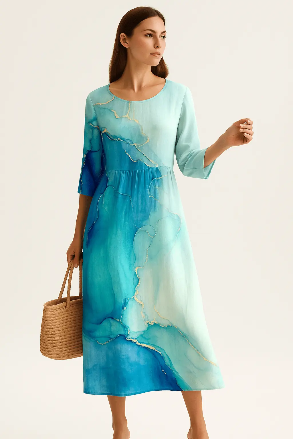 La Robe Maxi Femme Élégante Fleurie séduit par sa coupe ample et sa palette de verts lumineux. Son imprimé fleuri façon aquarelle évoque la nature en mouvement et offre une sensation de fraîcheur visuelle. Avec ses manches trois-quarts et son encolure ronde, cette robe maxi femme élégante fleurie conjugue confort, aisance et style pour toutes les morphologies. Parfaite pour les journées ensoleillées ou les escapades décontractées, elle se porte aussi bien avec des sandales que des escarpins.