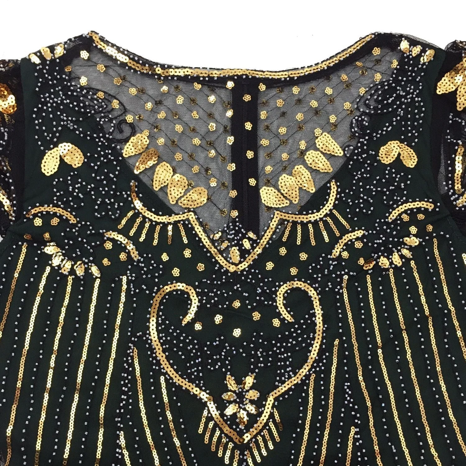 À l’occasion d’une soirée à thème, de cocktail ou autre encore, une robe rétro année 20 droite va à merveille. La robe tunique est faite d’une guipure à modèle très remarquable de couleur doré et argenté attirant surtout l’intention et le regard d’autrui. Cette tenue est brodée des franges au bord du bas ainsi que sur les extrémités de sa courte manche afin de montrer son charme.