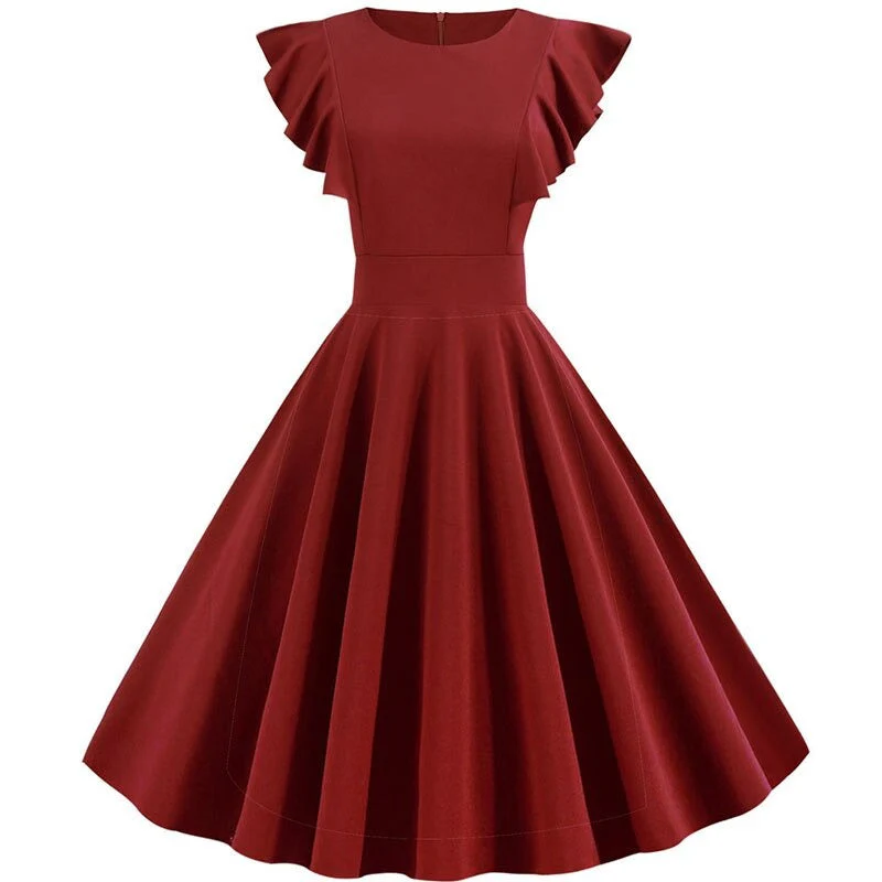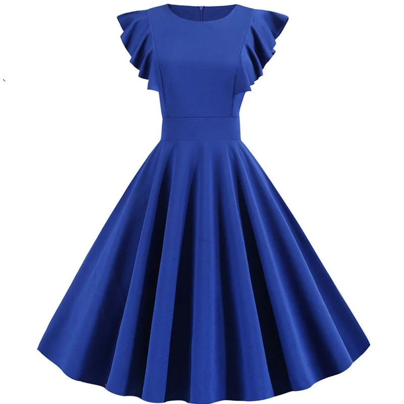La Robe style année 50 blanche est un modèle de robe élégante avec des manches pétales pour femmes. C’est une tenue décontractée qui passe partout. Il est inné d’un design simple à couleur unie. Cette robe est très classe et peut même être portée aux travails au bureau. Il est élastique et facile à enfiler et de mettre en valeur votre silhouette.