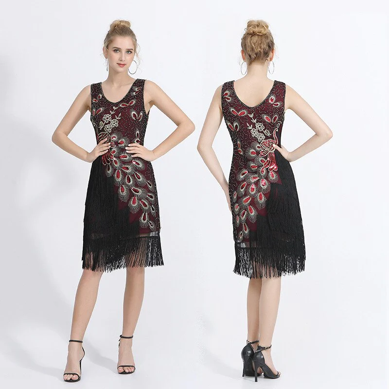 Bien évidemment, pour vous trouver une robe de type vintage sans défaut. Alors, optez pour ce Style Robe Année 20. Bien sûr, il s’agit là d’un modèle convenant aux demoiselles comme aux jeunes femmes. D’ailleurs, son style vintage est son atout majeur. Tandis que ses motifs décoratifs en paillette et perle sont étincelantes et originaux. De plus, grâce à son absence de manche et sa courte jupe asymétrique, vous êtes toujours au frais. Toutefois, son tissu de fabrication est de premier choix. Cela implique que vous soyez toujours à l’aise dans une robe à toute épreuve.