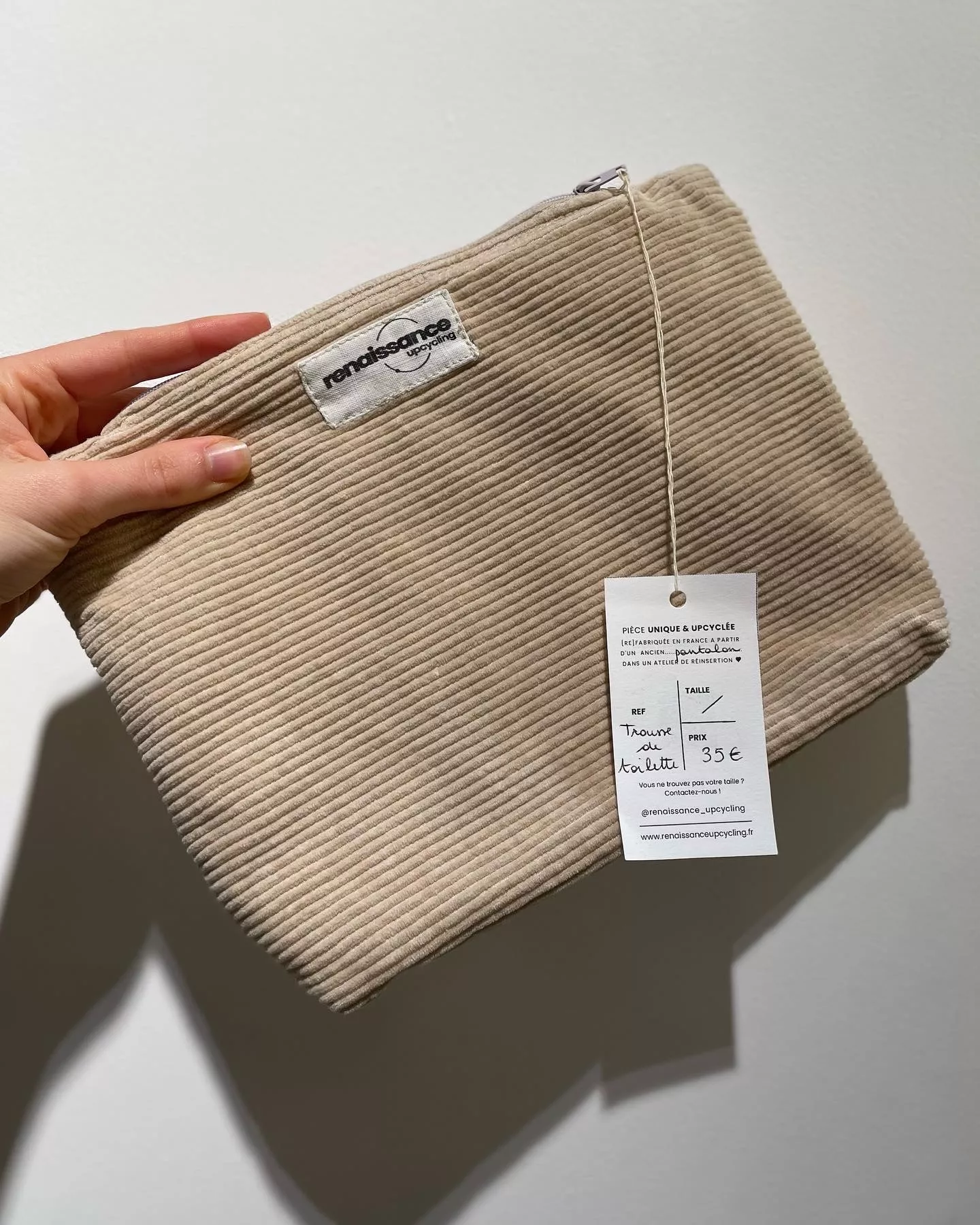 Cette pièce a été upcyclée à partir d’un ancien pantalon en velours côtelé que l’on a recoupé et réassemblé pour lui donner une nouvelle vie !