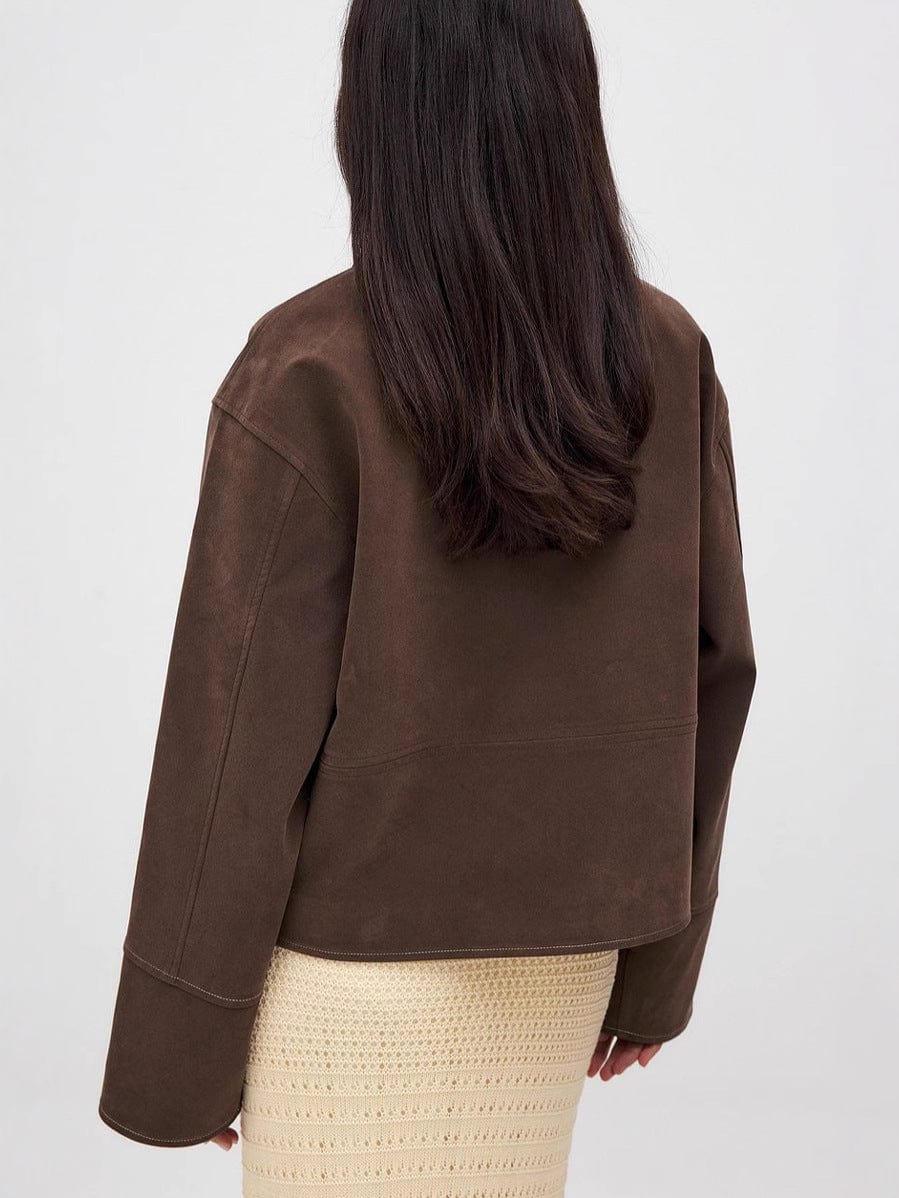 Cette veste zippée coupe droite combine structure et douceur, parfaite pour affirmer ton style au quotidien. Une pièce qui élève instantanément toute tenue basique grâce à sa coupe nette et son allure intemporelle.
